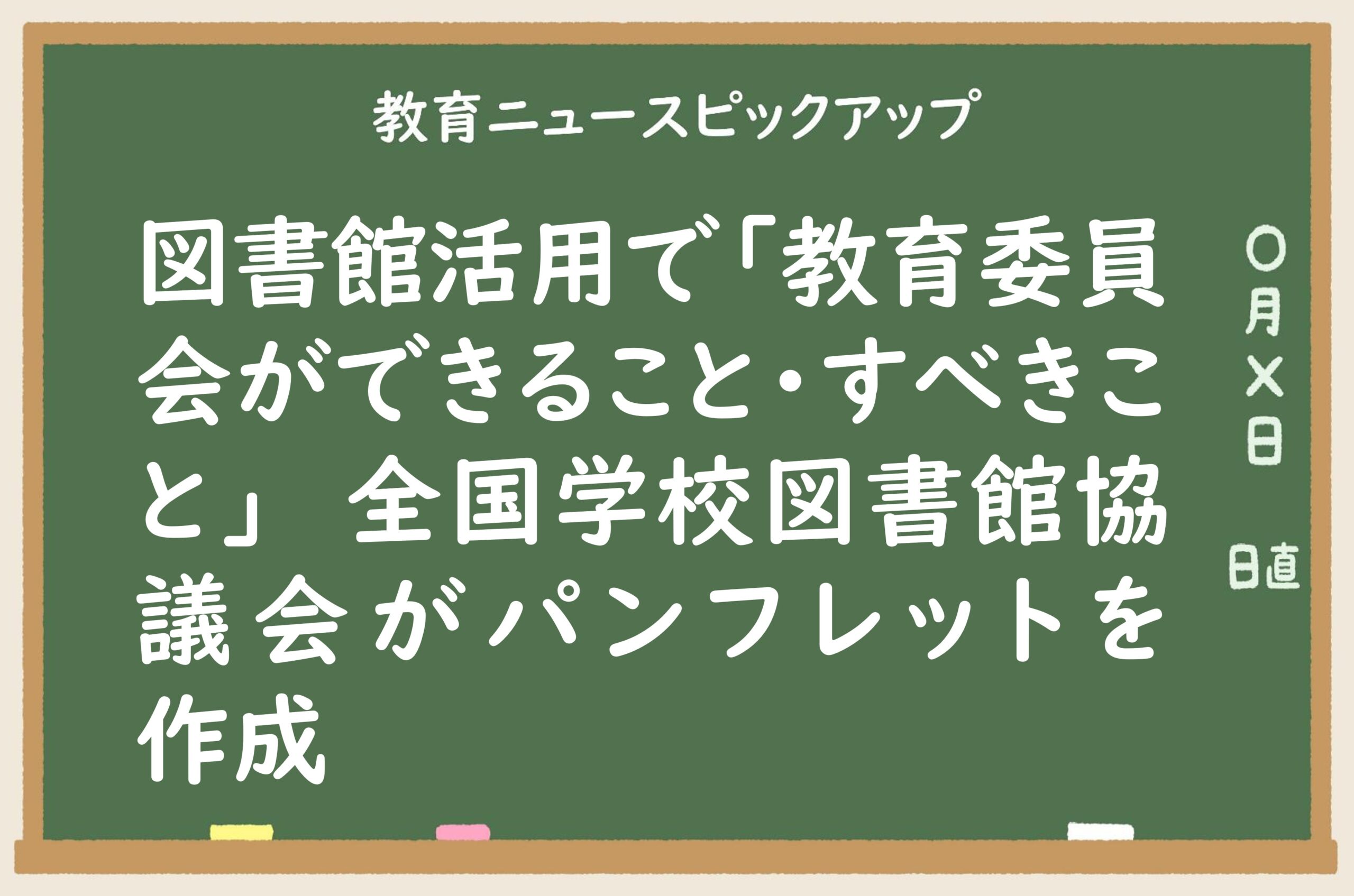 2026/04/08 教育ニュースピックアップ図書館活用で「教育委員会ができること・すべきこと」 全国学校図書館協議会がパンフレットを作成