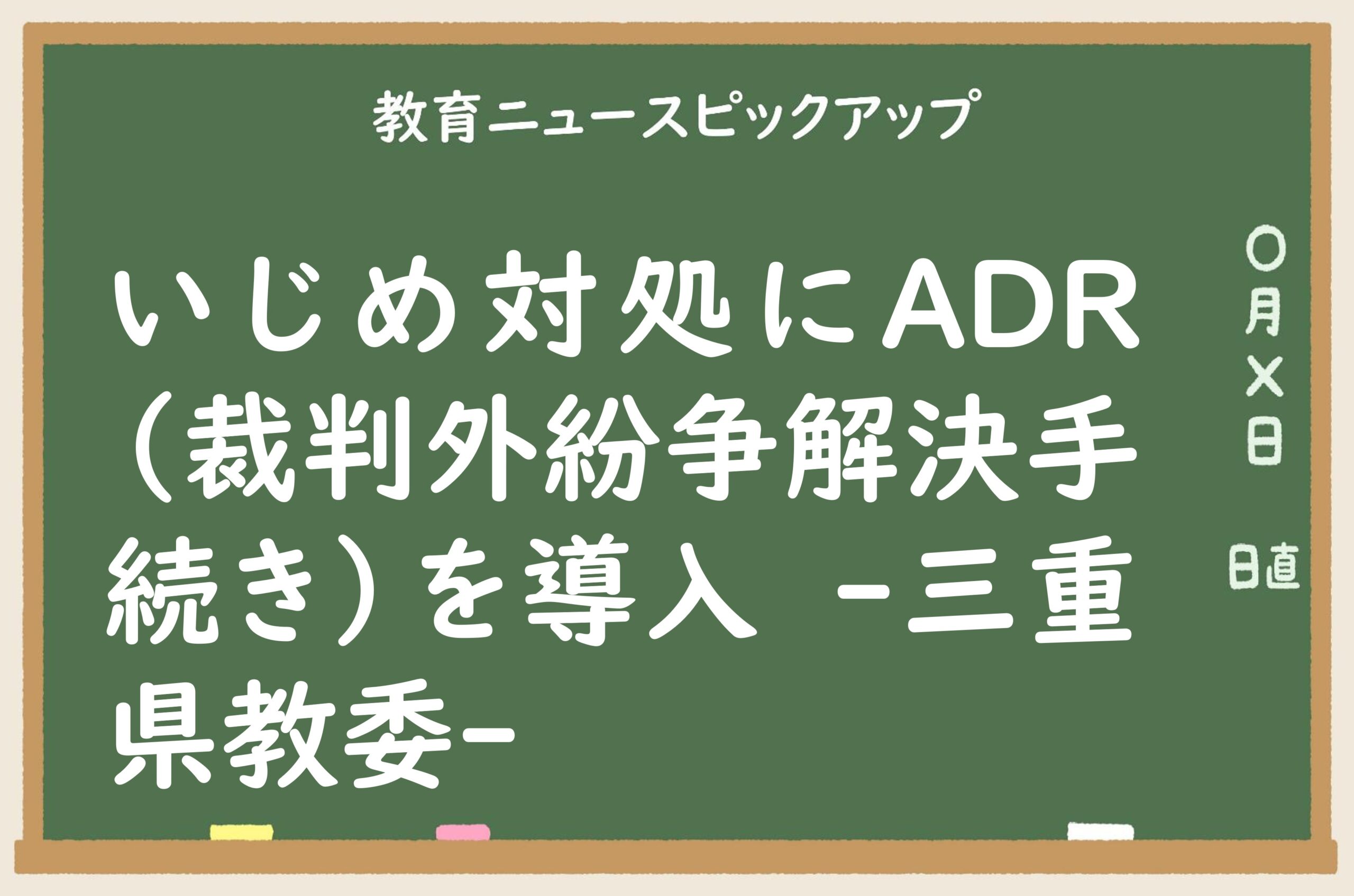 - いじめ対処にADR(裁判外紛争解決手続き)を導入 -三重県教委-