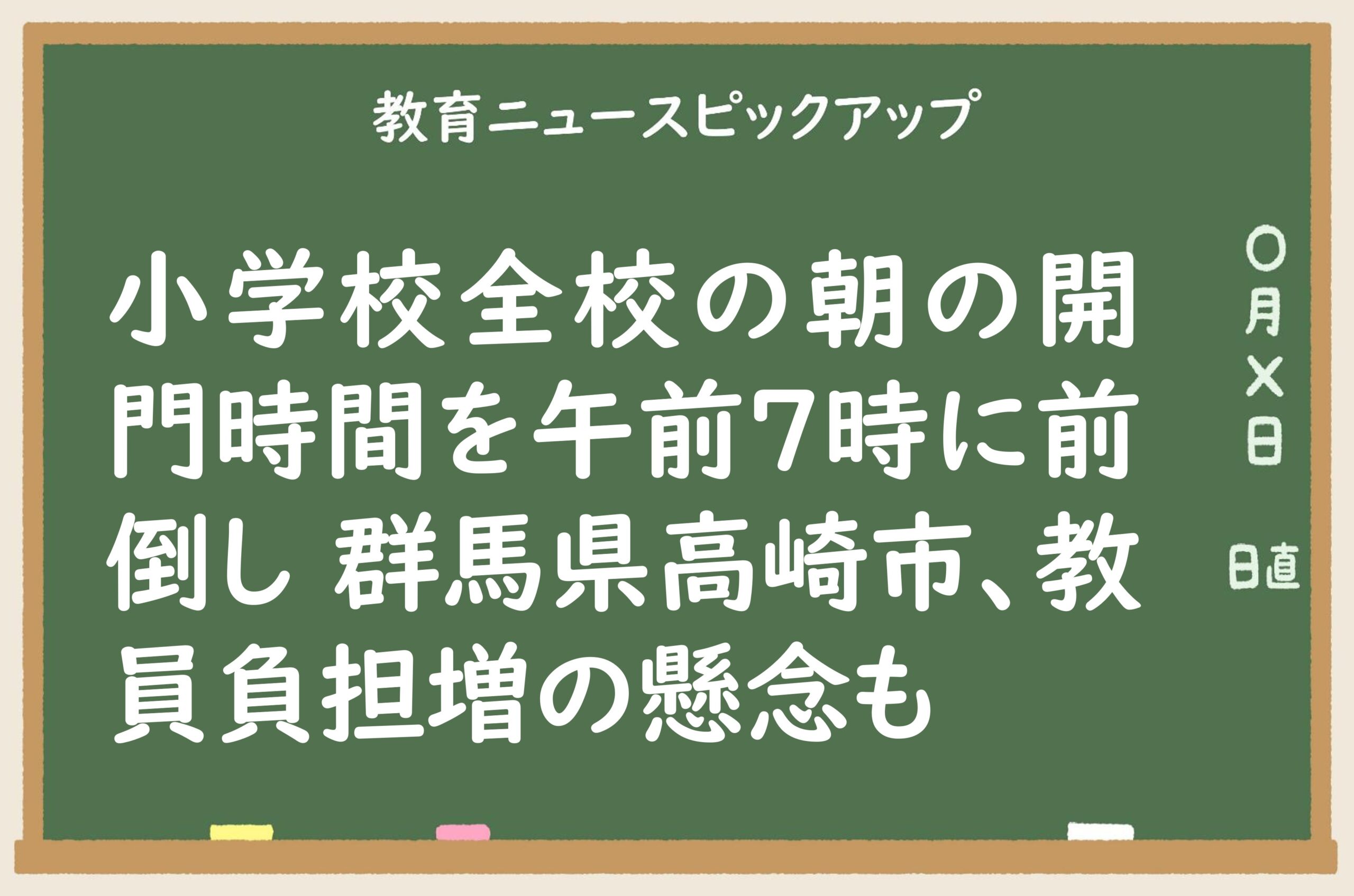 - 小学校全校の朝の開門時間を午前7時に前倒し 群馬県高崎市、教員負担増の懸念も
