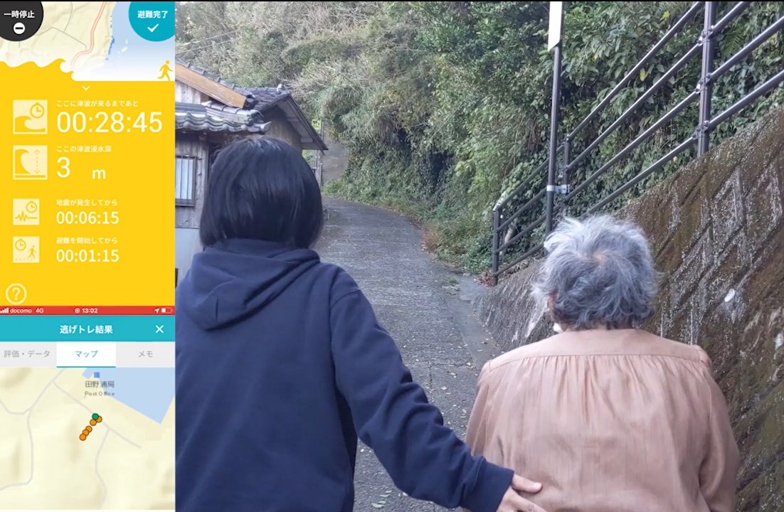 その一例を短く示しておきましょう。高知県黒潮町や四万十町では30メートルを超える津波が想定され、多くの高齢者が「どうせ逃げ切れない」と諦めの言葉を漏らすようになりました。そこで、個別避難訓練支援アプリ「逃げトレ」を使って、高齢者と避難訓練をします。「逃げトレ」は、避難訓練で実際に移動しているルートや時間と、津波浸水シミュレーションを同時に表示してくれます。つまり、高齢者の歩行速度でも想定される巨大津波から逃げられることを、アプリを見ながら避難訓練をすることで体感することができます。これによって、多くの高齢者が「逃げられる」と自信を持つようになりました。自ら意思決定する権利を取り戻すとともに、高齢者の尊厳を守るとりくみにもなりました。