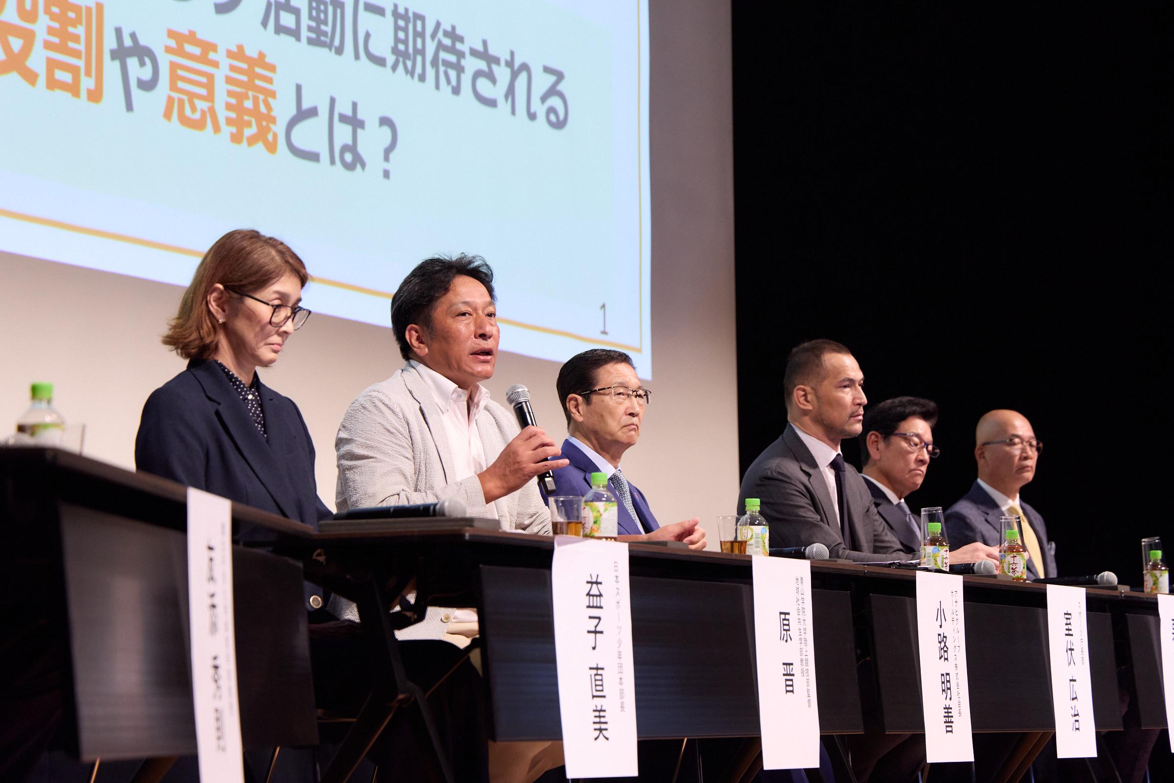 続いて行われたパネルディスカッションでは、室伏長官に加え、栗山英樹氏、小路明善氏、代田昭久氏、原晋氏、益子直美氏といった各分野の有識者がそれぞれの立場から意見を交わした。
