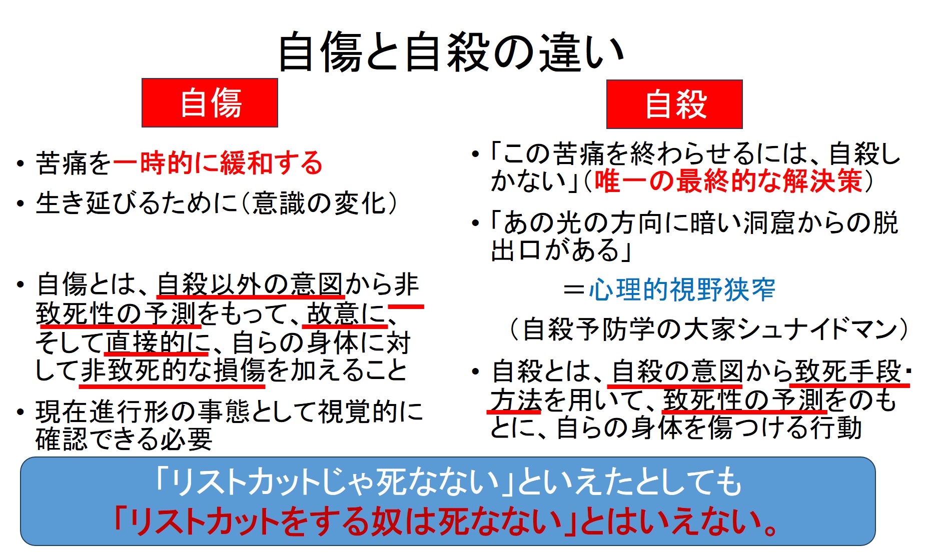 ここで、自傷(リストカット)と自殺の大きな違いについて説明します。