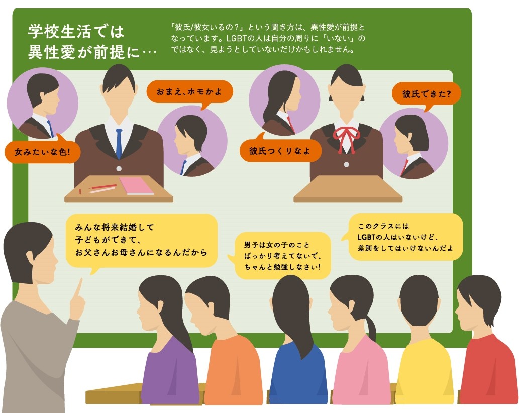 例えば、多様な性的指向について「おかしいもの」として周囲が話していたり、「うちの学校にはいない」と先生が言っていたりして、自分は普通ではないと思い込んでしまうことがあります。