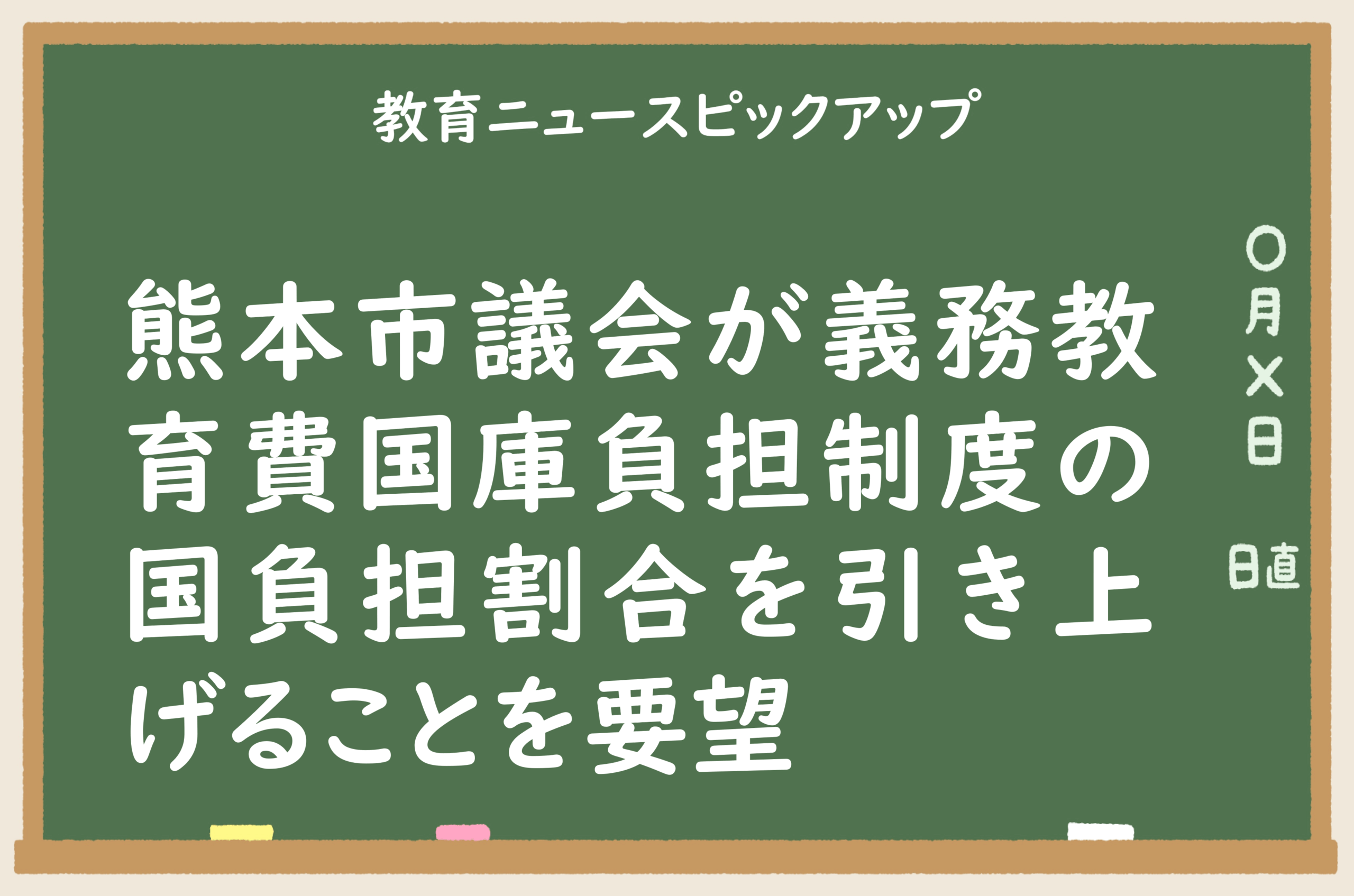 2025/07/28 教育ニュースピックアップ熊本市議会が義務教育費国庫負担制度の国負担割合を引き上げることを要望