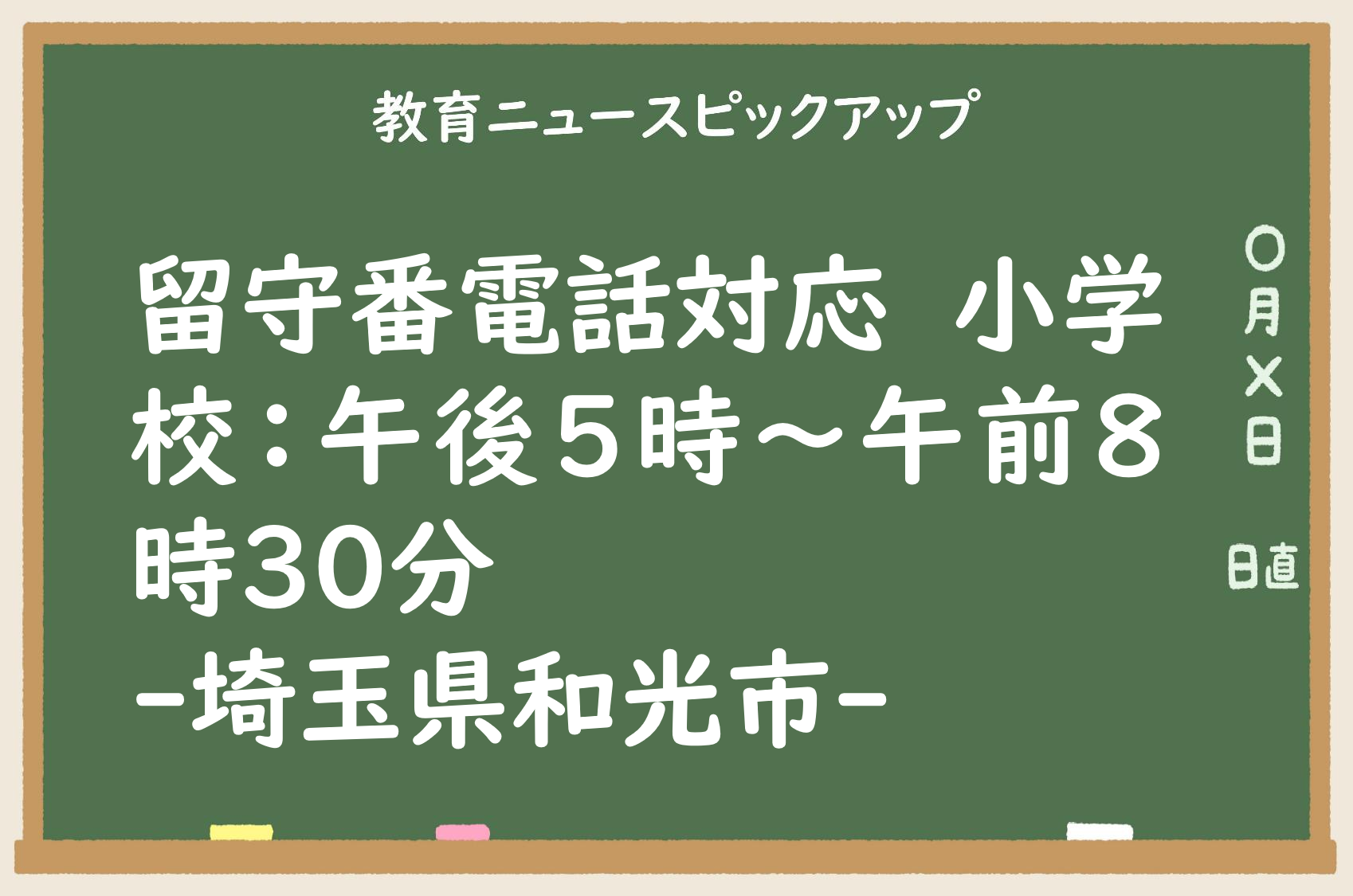 2025/08/07 教育ニュースピックアップ留守番電話対応 小学校:午後5時~午前8時30分-埼玉県和光市-