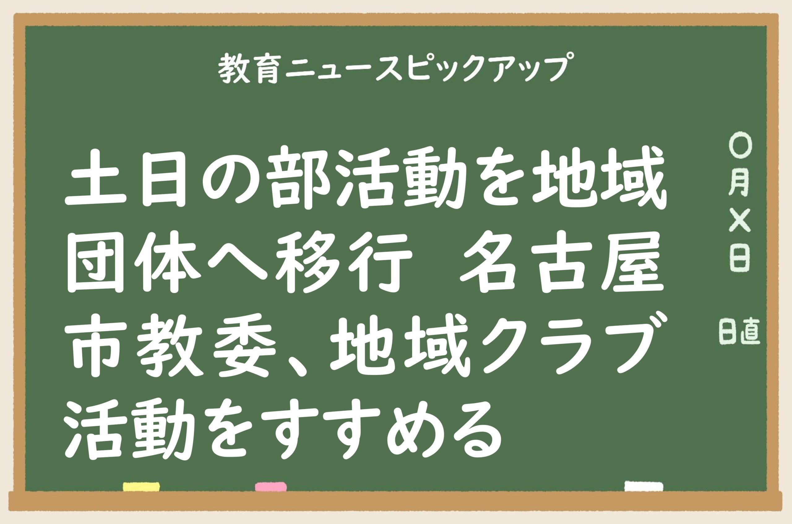 名古屋市教育委員会は2025年10月から、市立中学校の土・日曜の部活動を原則廃止し、地域団体(地域クラブ活動)への移行を始めました。 地域クラブ活動の実施主体となる団体等とし...