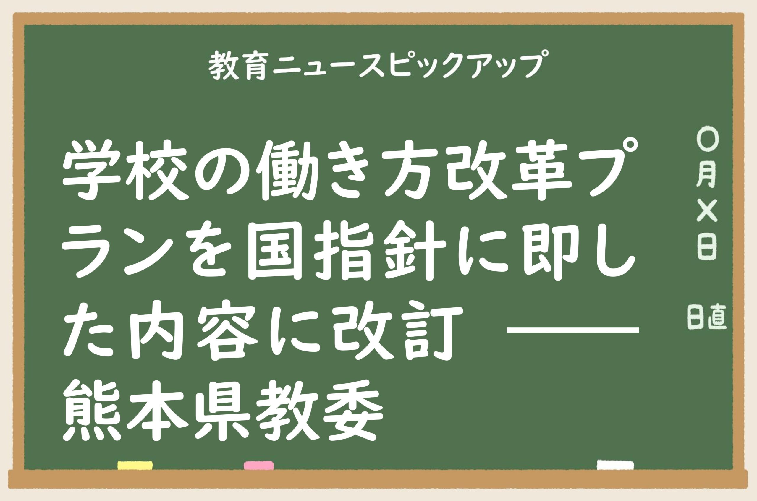 2026/03/17 教育ニュースピックアップ学校の働き方改革プランを国指針に即した内容に改訂 ―― 熊本県教委
