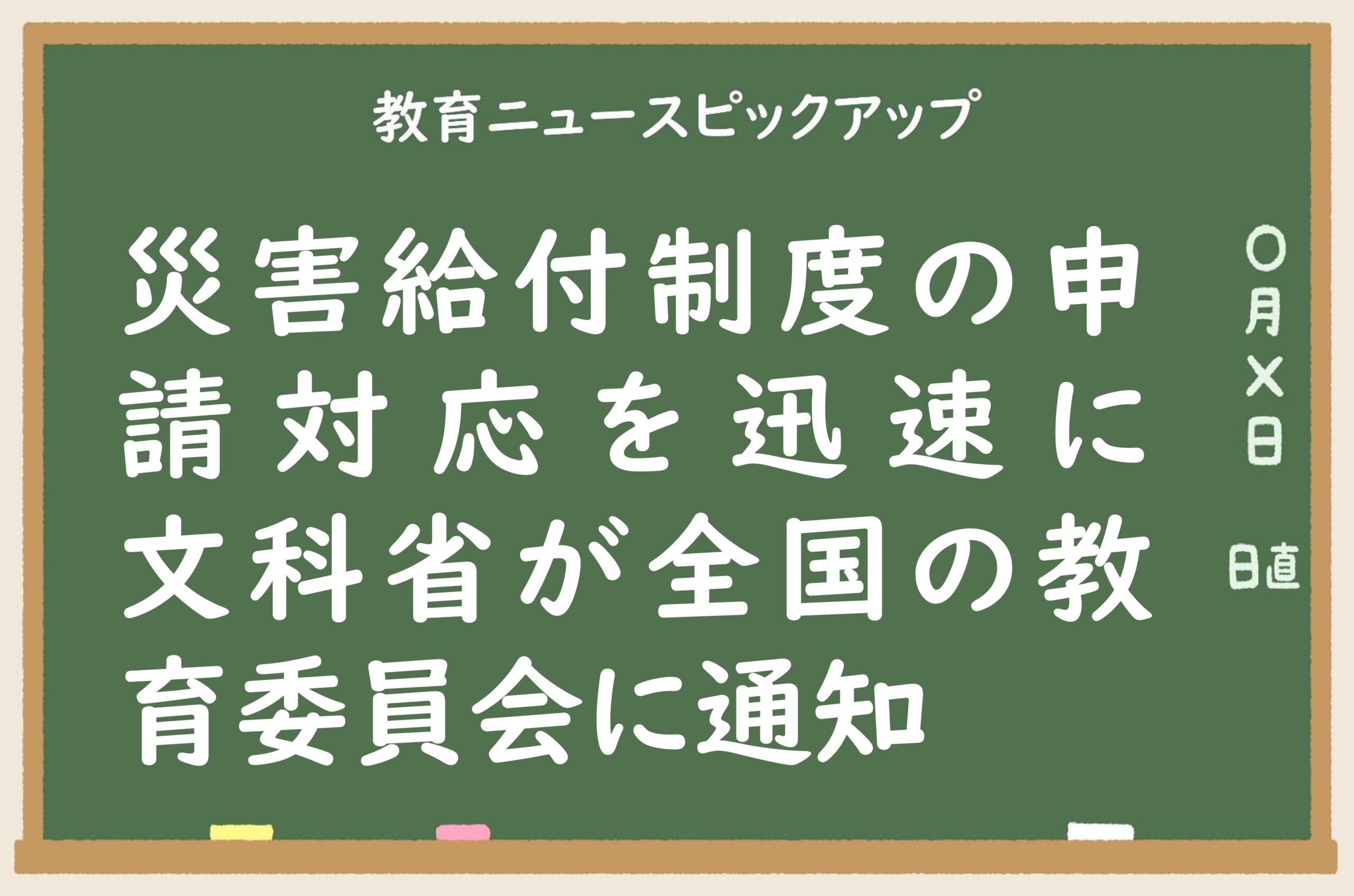2025/11/12 教育ニュースピックアップ災害給付制度の申請対応を迅速に 文科省が全国の教育委員会に通知