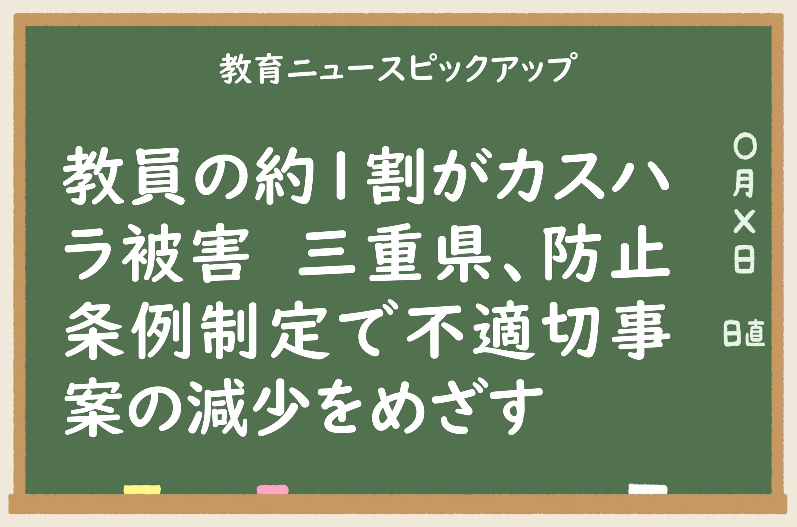 2025/11/25 教育ニュースピックアップ教員の約1割も被害 三重県、「カスハラ防止条例」制定で不適切事案の減少をめざす