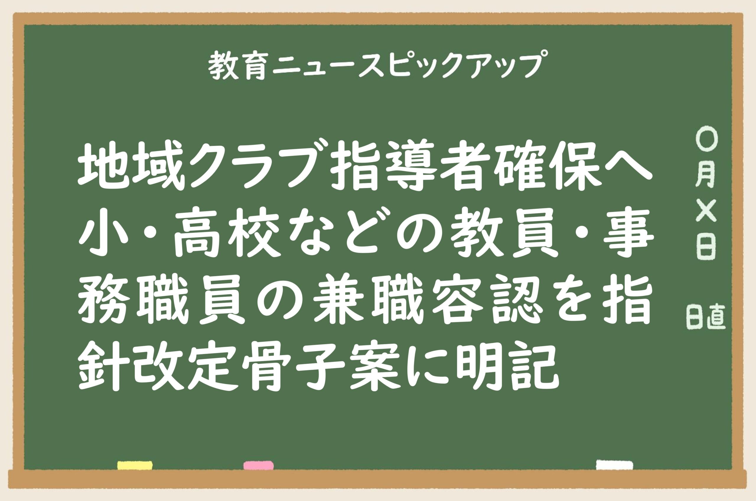 2025/11/19 教育ニュースピックアップ地域クラブ指導者確保へ 小・高校などの教員・事務職員の兼職容認を指針改定骨子案に明記