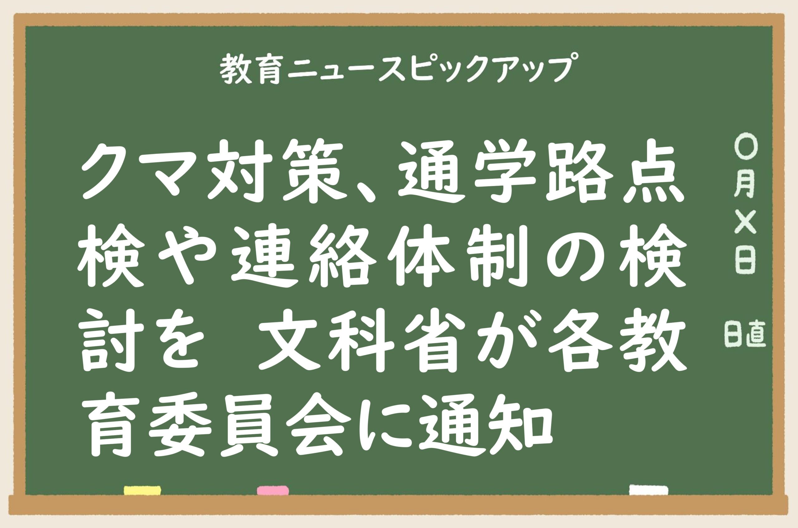2025/11/17 教育ニュースピックアップクマ対策、通学路点検や連絡体制の検討を 文科省が各教育委員会に通知