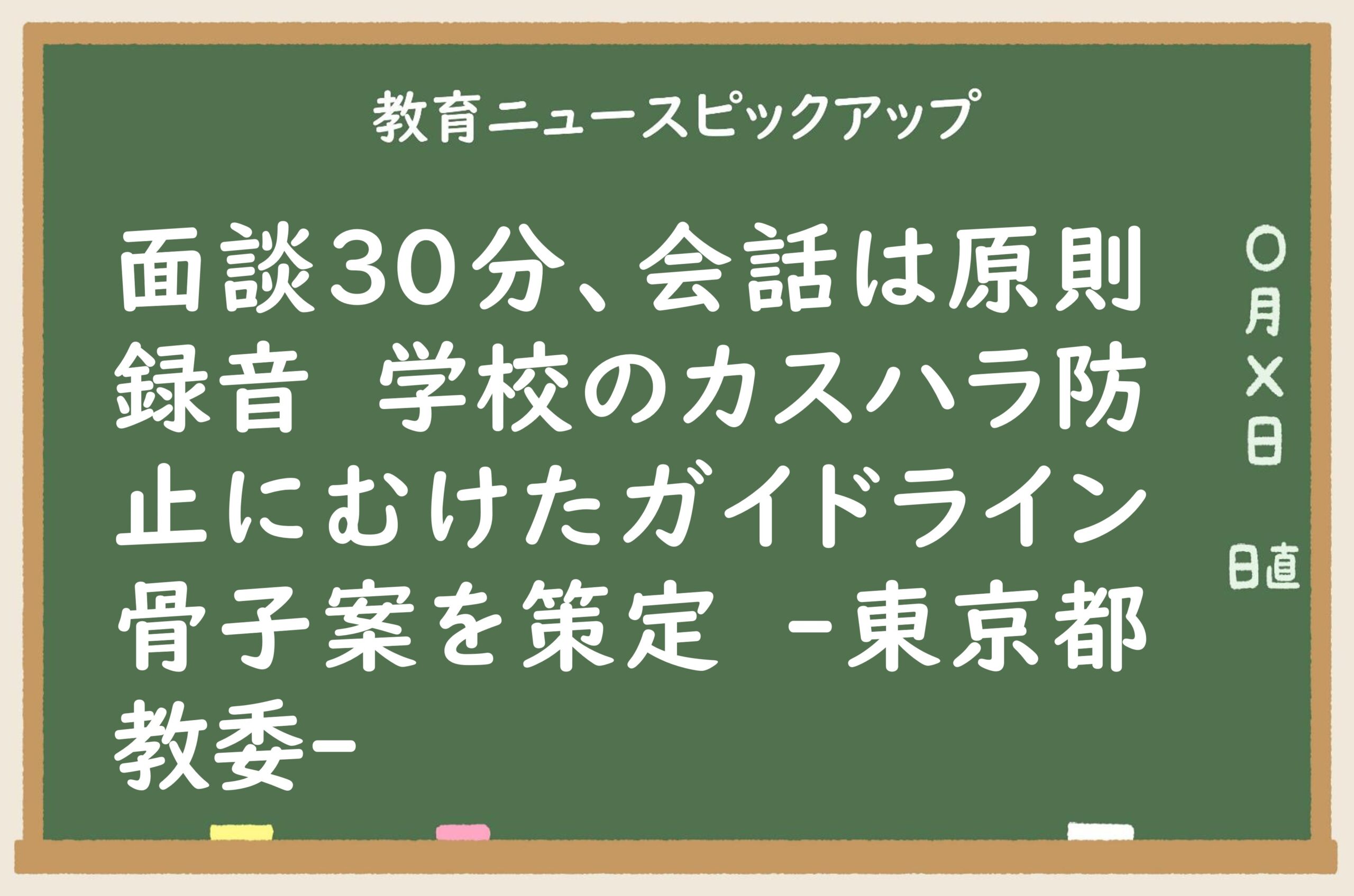 2025/12/09 教育ニュースピックアップ面談30分、会話は原則録音 学校のカスハラ防止にむけたガイドライン骨子案を策定 -東京都教委-
