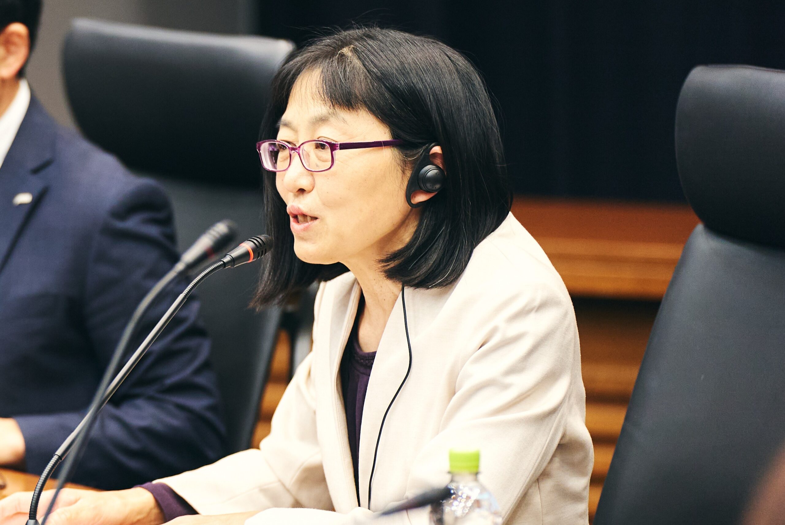 TALIS 2024調査結果概要を報告する日本教職員組合の薄田綾子政策局次長