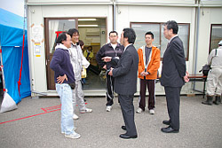 また、学校の被害状況を視察するとともに、県・高教組の組合員が災害ボランティアとして活動している現場を訪れ、激励をしました。