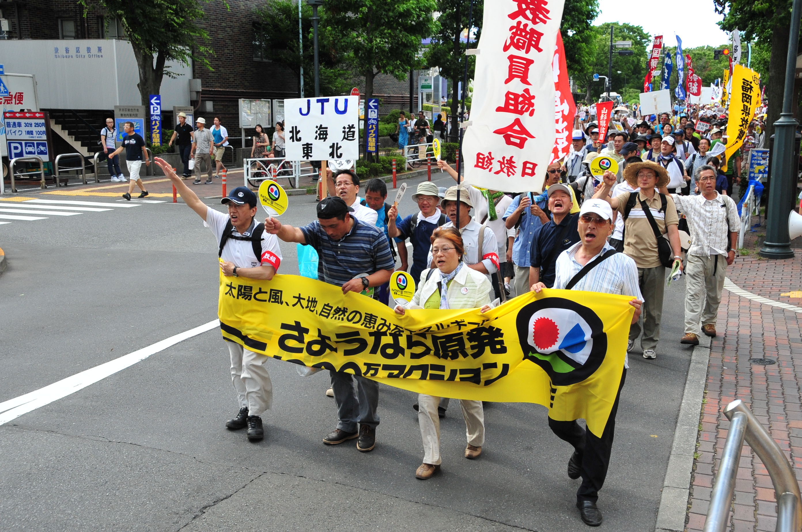 7月16日、「さようなら原発 10万人集会」が東京・代々木公園で開催され、日本教職員組合からも約3,000人が参加しました。